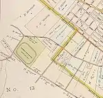 Hurstville's earliest settlers were Urban Van Hart, William Gilber, and a man by the name of Hagadorn. Hagadorn built a log tavern which gave this place its earliest name, that of Log Tavern.[1] In 1861 William Hurst moved to this location and, within a few years of the Albany, Rensselaerville, and Schoharie Plank Road (later turnpike) being built through here, built the Hurstville Hotel.[1][2] The hotel was built on the site of an earlier hotel, the "Log Tavern".[3] He also later built a trotting track at the northeast corner of Whitehall Road and New Scotland Avenue.[2] During the Prohibition Era the hotel was known as the Love Nest and was a speak easy.[3] The hotel burned down in 1929.[2]