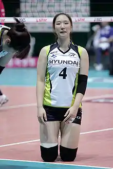 She was part of the silver medal winning team at the 2010 Asian Games.[1] She was also part of the South Korea women's national volleyball team at the 2010 FIVB Volleyball Women's World Championship,[2] and 2011 FIVB Volleyball Women's World Cup.[3] She participated in the 2012 Summer Olympics, when the South Korean team finished 4th after losing the bronze medal match 0-3 to Japan, and the 2016 Summer Olympics, when they finished 5th.[4][5][6]