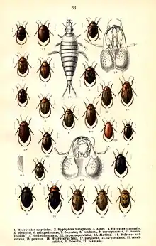 - ↑ Friday L.E. 1988. A key to the adults of British water beetles. Field Studies Council. pdf