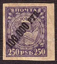 The early Soviet hyperinflationary period was marked by three successive redenominations of its currency, in which "new rubles" replaced old at the rates of 10,000-to-1 (January 1, 1922), 100-to-1 (January 1, 1923), and 50,000-to-1 (March 7, 1924), respectively.