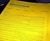 IEEE Transactions on Education is a quarterly peer-reviewed academic journal on engineering education that is published by the IEEE Education Society.[1] It covers the area of education research, methods, materials, programs, and technology in electrical engineering, computer engineering, and fields within the scope of interest of the Institute of Electrical and Electronics Engineers. The journal was known as the IRE Transactions on Education from 1958 through 1962. The editor-in-chief is John E. Mitchell (University College London).