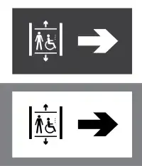 No colours are specified in ISO 7001, with the only guidance being to ensure clear contrast between the symbol and the sign background, as well as the environment the sign is in. There is a clear recommendation against using colors specified in ISO 3864, due to possible confusion with safety signage using those colors. Of explicit concern is green and white, due to the risk of confusing a green and white 'PI PF 030' direction arrow symbol, for an ISO 7010 evacuation route arrow.[2]