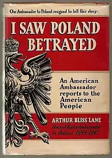 I Saw Poland Betrayed: An American Ambassador Reports to the American People (1948) is a book written by former United States ambassador to Poland, Arthur Bliss Lane, who observed what he considered to be the betrayal of Poland by the Western Allies at the end of World War II.[1] He resigned as ambassador in 1947 in order to inform Americans what was occurring "behind the Iron Curtain."[2]
