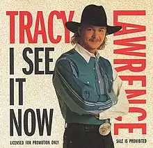 "I See It Now" is a song written by Larry Boone, Paul Nelson and Woody Lee, and recorded by American country music artist Tracy Lawrence. It was released in August 1994 as the first single from his album of the same name.[1] It peaked at number 2 on the U.S. Billboard Hot Country Singles & Tracks chart and reached number 5 on the Canadian RPM Country Tracks chart. It also peaked at number 84 on the U.S. Billboard Hot 100 chart.