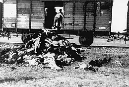 The Iași pogrom (Romanian pronunciation: [ˈjaʃʲ] ⓘ, sometimes anglicized as Jassy) was a series of pogroms launched by governmental forces under Marshal Ion Antonescu in the Romanian city of Iași against its Jewish community, which lasted from 29 June to 6 July 1941. According to Romanian authorities,[5] over 13,266 people,[6] or one third of the Jewish population, were massacred in the pogrom itself or in its aftermath, and many were deported. It was one of the worst pogroms during World War II.[7]