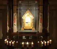 Ida died 4 September 825 and was buried at the church in Herzfeld, which became the first pilgrimage site in Westphalia.[3] In 2011 the pilgrim Church of St. Ida in Herzfeld (Lippetal) was designated a minor basilica. In Herzfeld, the folk festival of "Ida Week" is held every year in September in memory of the saint. During the week, the bones of the saints are carried through the village in a solemn procession; then the "Ida Blessing" is granted.[4]
