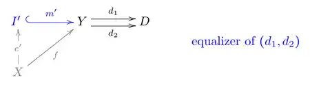 • Universality: let be a factorization with regular monomorphism, i.e. the equalizer of some pair .
