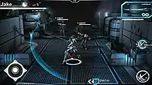 Implosion is a third-person hack-and-slash that allows players to use their mecha's sword as well as ranged gun attacks.[5] The player's mecha uses rolling to dodge enemy attacks and can combo attacks in sequence.[5] The mecha is also customizable with different parts bought from a shop, which can change how it controls, although the gameplay is mainly skill-based.[5]