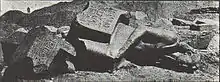 At Memphis (?), Imyremeshaw was attested by a pair of colossi dedicated to Ptah "He who is south of his wall, Lord of Ankhtawy" (rsy-ínb=f nb ˁnḫt3wy).[3] This is a Memphite epithet indicating that the statues must originally have been set up in the temple of Ptah in Memphis.[1]