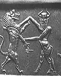 Some Indus seals seem to show possible Mesopotamian influence, as in the "Gilgamesh" motif of a man fighting two lions (2500-1500 BCE).[93][94][102]