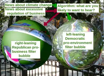 - ↑ Technopedia, Definition – What does Filter Bubble mean? Archived 2017-10-10 at the Wayback Machine, Retrieved October 10, 2017, "....A filter bubble is the intellectual isolation, that can occur when websites make use of algorithms to selectively assume the information a user would want to see, and then give information to the user according to this assumption ... A filter bubble, therefore, can cause users to get significantly less contact with contradicting viewpoints, causing the user to become intellectually isolated...."