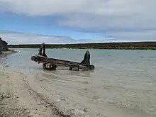 Development at Stenhouse Bay included the construction of a jetty for the loading of goods onto ships.[14] The two mining operations were consolidated under the control of one company, the Waratah Gypsum Pty Ltd, at a time during the late 1920s or the 1930s. It is reported that six million tonnes (6,000,000 long tons) of gypsum was extracted from sites at Marion, Inneston and Spider Lakes between the years 1905 and 1973. In 1970, mining continued on land not included in Innes National Park and is reported as ceasing sometime immediately prior to 2003.[14]