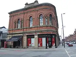 Among his many civic commissions was a replacement for the Manchester Free Library which had been established in Castlefield in 1852.[4][lower-alpha 2] The first public lending library in England, following the Public Libraries Act 1850, the library was immensely popular.[6] By the 1880s the original building's size was insufficient and the corporation determined on a new building at the end of Deansgate.[2]