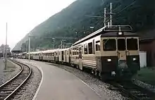 Meanwhile, in 1888, the metre gauge Brünig railway had opened between Brienz, on Lake Brienz, and Alpnachstad, on Lake Lucerne, thus providing a through steamer and rail connection from Interlaken to Lucerne. By 1916 the Brünig railway had reached Interlaken Ost from Brienz, and, together an earlier extension at its eastern end, provided a through rail route to Lucerne.[7]