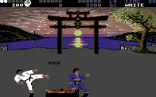 Three karateka fight against each other on a beach, trying to be the first to score six points. After every two rounds, there is a bonus game which is either deflecting bouncing balls or kicking away bombs. The C64 version of the game only has the ball bouncing bonus game, and not the bomb bonus game. The game can be played by one or two human players; at least one fighter is always controlled by the computer. Unlike its predecessor, International Karate, there is only one backdrop. However, different parts of the backdrop can be recoloured to several different themes by the players using specific keystrokes. The Amiga, Atari and C64 versions of the game (and possibly other versions, unconfirmed) had a number of "background antics", a Pac-Man would appear, a spider would descend, and a U-boat's periscope would occasionally be seen in the harbour. In addition, pressing a certain key or keys would cause the trousers of all three protagonists to fall down, after which they would do a double-take. Additionally, it was possible (on the Amiga version, at least) to type in four-letter curse words; the game would respond first by rebuking the player for their use of such language, and upon the second offence would reset the game.