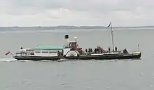 After the war, she returned to the River Dart, where she continued her civilian career until finally being withdrawn from service in 1965.[37] She was bought by the Paddle Steamer Preservation Society (PSPS) two years later[39] and was chartered by them to the Medway Queen Marina in August 1967, to operate alongside the marina's other paddle steamer, the Medway Queen. Owner, Alan Ridett, thought that the Kingswear Castle would be an attractive addition to the marina and hoped that he would be able to use it for cruises along the River Medina.[17] In May 1969, after an extensive mechanical overhaul, she took her first trip under her own steam since being withdrawn from service in 1965.[40] A month later, she was running a cruise up the Beaulieu River.
