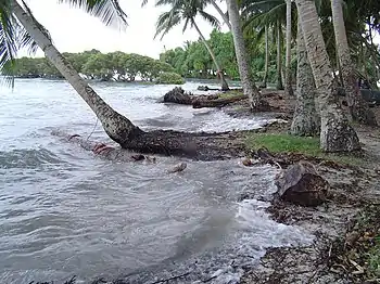 Islands are surrounded by water, and may or may not exist as part of a continental land mass. Oceanic islands arise due to volcanic activity or reef growth, and usually subside over time due to erosion and changing sea levels.[1] When islands emerge, they undergo the process of ecological succession as species colonize the island (see theory of island biogeography). New species cannot immigrate via land, and instead must arrive via air, water, or wind. As a result, organisms with high dispersal capabilities, such as plants and birds, are much more common on islands than are poorly dispersing taxa like mammals.[1] However, some mammals are present on islands, presumably from swimming or riding on natural “rafts” that are washed away from the mainland.