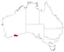 Elkhorn coneflower grows in low shrubland on the near Esperance and on Mount Baring near the Cape Arid National Park in the south-west of Western Australia.[2][3]