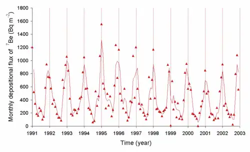 - 1 2 Yamamoto, Masayoshi; Sakaguchi, Aya; Sasaki, Keiichi; Hirose, Katsumi; Igarashi, Yasuhito; Kim, Chang Kyu (January 2006). "Seasonal and spatial variation of atmospheric 210Pb and 7Be deposition: features of the Japan Sea side of Japan". Journal of Environmental Radioactivity. 86 (1): 110–131. doi:10.1016/j.jenvrad.2005.08.001. PMID 16181712.