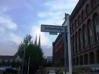 The Jüdenstraße (German: Street of the Jews), is a street in central Berlin, the capital of Germany. It is in the borough of Mitte and runs between Rathausstraße and Stralauer Straße, next to the Rotes Rathaus, Berlin's town hall. It is one of the oldest streets in Berlin, dating from the late 13th century.