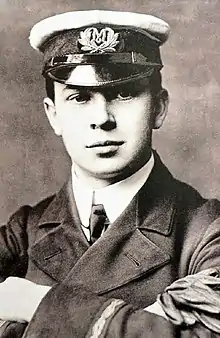 In March 1912, Phillips was sent to Belfast, Ireland, to be the senior wireless operator on board Titanic for her maiden voyage. He was joined by junior wireless operator Harold Bride.[3] Stories have appeared that Phillips knew Bride before Titanic, but Bride insisted they had never met before Belfast.[1] Titanic sailed for New York City, United States, from Southampton, England, on 10 April 1912, and during the voyage Phillips and Bride transmitted passengers' personal messages and received iceberg warnings and other navigational information from other ships. Phillips celebrated his 25th birthday the day after the voyage began.