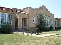 Jackson School, built in 1936, is located in Enid, Garfield County, Oklahoma and listed on the National Register of Historic Places since 1989. It is one of three Mission/Spanish Colonial buildings in Enid.[1] The other two are the 1928 Rock Island Depot, also listed on the register, and the Ehly house, constructed in 1929 for local J.C. Penney's manager, Gus Ehly.[2] The building is constructed using buff brick and cast stone decorative molding. It has two arched entry ways with red tile shed roofs, a Greek cross in the upper middle section, and cement staircases. The building encompasses Block 16 of Enid's Southern Heights second addition.[1] Its architect Roy Shaw also designed several other Enid school buildings including Enid High School, Adams, Garfield, Roosevelt, and Longfellow.[3] Jackson school served as an all-white school until Enid's schools integrated in 1959. From 1967 to 1969, Jackson and neighboring George Washington Carver, formerly an all-black school, split grades 1-3 and 4–6, respectively, between the two schools, until both were closed in 1969.[4]
