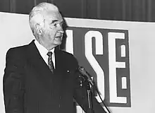 Mackay giving a public lecture at LSE in 1989