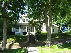 The James Norman Hall House is a historic residence located in Colfax, Iowa, United States. This was an early home of author James Norman Hall. His first book was written here, and it figured into his other works, notably Oh Millersburg![2] He is best known as a co-author of the 1932 novel Mutiny on The Bounty. Most of Hall's life, however, was lived outside of Colfax and the United States in his later years. The two-story, frame house, follows an L-plan. There is a single story wrap around porch on the west, south and half of the southeast sides. It was listed on the National Register of Historic Places in 1984.[1]