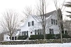 The James Perry House is a historic house at 121 Perryville Road in Rehoboth, Massachusetts. This 1+1⁄2-story cottage was built c. 1860 by James Perry, a wealthy manufacturer, and is one of Rehoboth's finest Italianate houses. Its center entry is flanked by sidelight windows and pilasters, topped by a narrow entablature. The eaves are bracketed and modillioned, and there are round-arch windows in the gables. The land on which it was built belonged to members of the Perry family from 1831, and overlooked a mill operated by the family.[2]