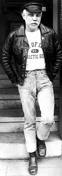 In 1984, in the midst of the One World Poetry demonstration, he organized an evening called "Poetry Gone Gay", in which he read some of his works dealing with homosexuality and eroticism. He found it extremely liberating to be able to show that part of his personality to the audience, and especially to obtain recognition and approval from it. Holmes loved to display his sexual orientation, not only in his poetry, but especially in his outfits and accessory choice. In the last years of his life he created the character that we see in the picture on this page: a middle-aged man with short white-as-snow hair, jeans with a studded waist, studded bracelets, a pink triangle on the flap of his jacket, a large handful of keys attached to the jeans, and the tip of a pink handkerchief sticking out of the back pocket. This same sexual freedom was, probably, the cause of his premature death caused by AIDS.[8] However, Holmes was aware of the dangers linked to his extravagant lifestyle, and openly declared that they had never, in any way, influenced his choices in life.
