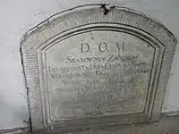 The general was buried in the catacombs of the Powązki Cemetery in Warsaw.[3] The inscription on the tombstone says: D.O.M. Dear corpse of Jan August Hiż, major-general of the formerly Polish Kingdom, aged 73 days 26, on December 22, 1816. Sadly, five children laid the stone in it.
