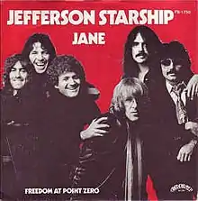 "Jane" is a song by American rock band Jefferson Starship, released on their 1979 album Freedom at Point Zero. The song peaked on the US Billboard Hot 100 at No. 14 and spent three weeks at No. 6 on the Cash Box Top 100.[1] In Canada, the song peaked at No. 13.[2] Billboard Magazine described "Jane" as "a fiery track paced by stinging guitars and some burning rhythm work."[3] Cash Box described it as "an explosive rocker, with slashing guitars."[4] Record World called it a "driving rocker" and praised Mickey Thomas' vocals.[5] GQ in 2015 said it was a "perfect, complex, trash-gem work of art."[6]