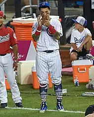 Baéz played for the Puerto Rican national team in the 2017 World Baseball Classic.[86] On March 10, 2017, Baéz got his first career WBC hit when he hit a single against Deolis Guerra of Venezuela. He also was awarded an RBI.[87] Against the Mexico national baseball team, Baéz went 2-for-5 while hitting his first career home run in the World Baseball Classic. He also got three RBIs and hit a double.[88] Puerto Rico finished pool play with a 3–0 record, winning Pool D. In their second Pool F game, Baéz stole three bases, including two steals of third.[89] They finished 3–0 in Pool F, advancing to the semifinals. They would defeat the Netherlands, 4–3, in the 11th inning.[90] Baéz struggled against the United States team, going 0-for-3 with a strikeout, while they lost the 2017 World Baseball Classic championship, 8–0.[91] Baéz finished the tournament as the stolen bases leader and being voted as the second baseman of the 2017 All-World Baseball Classic team.