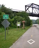 The Montour Trail is a multipurpose trail extending 40 miles (60 km) from Coraopolis to Clairton.[21] The trail is made of crushed limestone, making it ideal for biking, walking, and cross-country skiing in the winter.[21] The Montour Trail also connects with the Panhandle Trail, a trail of 29 miles (47 km) trail between Carnegie, Pennsylvania, and Weirton, West Virginia.[22]