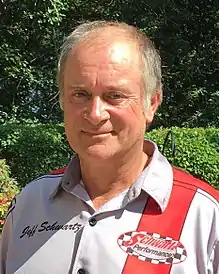 Jeff Schwartz is an American protouring car builder/designer and former professional road racer who brought to market the first Bolt-in Muscle Car Chassis for GM A-body cars.[1] In his modified and equipped cars, Schwartz is a six-time winner of the Car Craft Magazine's Real Street Eliminator competition with his fifth and sixth win at the ProAm Invitational in Milwaukee, WI in 2015.[2] [3][4] In 2013, Schwartz won "Popular Hot Rodding Magazine's Muscle Car of the Year" with his 1981 Twin Turbo TransAm [5] and was voted Car Craft Magazine's "Pro-Builder of the Year" with Jake Wallace's Twin Turbo 1967 Chevy Malibu.[6][7] In 2017, Schwartz and his crew won his second Car Craft Pro-Builder Award with a right hand drive 1970 Cuda.[8][9] He is the owner of Schwartz Performance in Woodstock, IL, the founder of the Schwartz Motocross History Museum in McHenry, IL and the father of two children.
