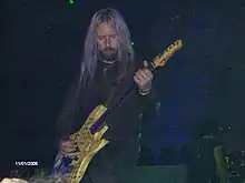 Jerry Fulton Cantrell Jr. (born March 18, 1966)[1] is an American guitarist, singer and songwriter. He is best known as the founder, lead guitarist, co-lead vocalist, and main songwriter[9] of the rock band Alice in Chains. The band rose to international fame in the early 1990s during Seattle's grunge movement, and is known for its distinctive vocal style[10] and the harmonized vocals between Cantrell and Layne Staley (and later Cantrell and William DuVall). Cantrell started to sing lead vocals on Alice in Chains' 1992 EP Sap. After Staley's death in 2002, Cantrell took the role of Alice in Chains' lead singer on most of the songs from the band's post-Staley albums, Black Gives Way to Blue (2009), The Devil Put Dinosaurs Here (2013) and Rainier Fog (2018), with DuVall harmonizing with him in the new songs and singing Staley's vocals in the old songs in live concerts.[11][12]