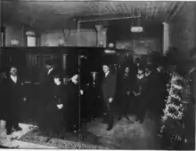 Binga Bank on opening day (January 3, 1921). Jesse Binga is fifth from left.[13]