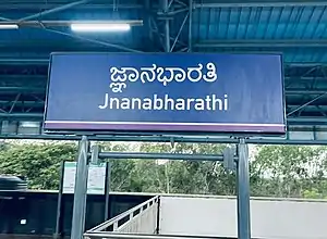 Jnanabharathi is an elevated metro station on the East-West corridor of the Purple Line of Namma Metro serving the Bangalore University campus along with Dhanvantri Vana park in Bangalore, India. This was inaugurated on 29 August 2021 and was commenced to the public on 30 August 2021.[1][2]