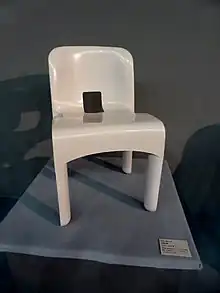 Together with his brother Gianni, Colombo developed the idea of prismatic lamps like the lamp Acrilica(1962). His first design for Kartell was the chair No.4801 (1963–1967) which consisted of three assembled plywood elements. The flowing elements of his chair were a foretaste of his later plastic designs, like the chair universale No.4860 (1965–1967), which was the first seating for adults made of ABS.