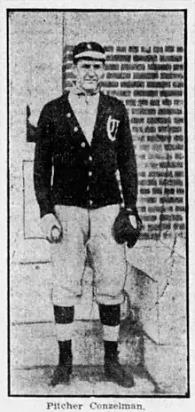 After his time at Brown, Conzelman joined the Pittsburgh Pirates in June 1912 but did not get into a game in that season. The following season, he made the team out of spring training.[2] He played his final Major League season with the Pirates in 1915.[5]