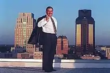 ![]() Joe Serna silhouetted by Sacramento's skyline | |
