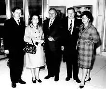 John Gronouski, Ambassador to Poland, meets his friends Wiesław and Longina Czajkowski with Chairman of the Polish-American Chamber of Commerce in Detroit, Chester A. Kozdroj and his wife Helena at the U.S. Embassy in Warsaw, September, 1966.