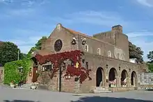 The school is a large complex completed over the course of several years. Its chapel, which is listed, is in a Free Byzantine Revival style with prominent aisles and arched windows. The walls are of plum-coloured brick with some stonework, such as on the buttresses, gables and architraves.[15]