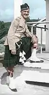 Serving with The Argyll and Sutherland Highlanders of Canada (Princess Louise's), he was overseeing a grenade throwing drill when a live grenade rolled back into the trench his men were in. He pushed another man out of the way, picked up the grenade and attempted to throw it to safety as it exploded. He was mortally wounded but, by his sacrifice, had protected his comrades from the explosion. "Jock" Rennie was born in Aberdeen in Scotland in 1920 and had emigrated with his family to Kitchener, Ontario as a child.[1]