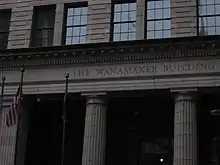 Wanamaker died on December 12, 1922.[26] His funeral was on December 14, 1922, with a service at the Bethany Presbyterian Church.[27] He was interred in the Wanamaker family tomb in the churchyard of the Church of St. James the Less in Philadelphia.