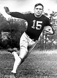 John Victor McNally (November 27, 1903 – November 28, 1985), nicknamed "Johnny Blood", was an American football player and coach. McNally was named a member of the NFL 1930s All-Decade Team and was inducted into the Pro Football Hall of Fame as a player in 1963, as one of the Hall of Fame's 17 charter members. McNally played for six different teams between 1925 and 1941, with his longest tenure being with the Green Bay Packers, first from 1929–33 and then from 1935–36. McNally served in the United States Army Air Corps during World War II. Following the war he attempted to return to football in 1945, but an injury ended his playing career.