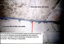 "HOW" (Head Of Wall) Building Joint with incomplete firestop made of rockwool packing