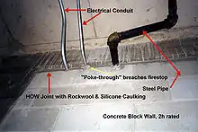 A building joint is a junction where building elements meet without applying a static load from one element to another. When one or more of these vertical or horizontal elements that meet are required by the local building code to have a fire-resistance rating, the resulting opening that makes up the joint must be firestopped in order to restore the required compartmentalisation.