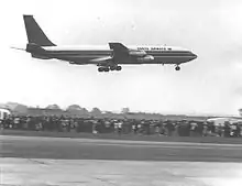 A Kenya Airways Boeing 707 at a Nairobi Airshow in 1977