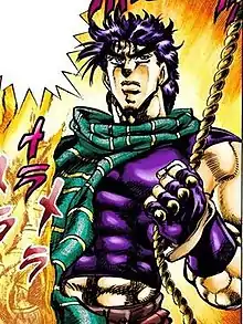 Joseph "JoJo" Joestar (Japanese: ジョセフ・ジョースター, Hepburn: Josefu Jōsutā) is a fictional character in the Japanese manga series JoJo's Bizarre Adventure, written and illustrated by Hirohiko Araki. Joseph is the main protagonist of the series' second story arc, Battle Tendency, and the grandson of the first arc's protagonist, Jonathan Joestar. Having been brought up by his grandmother Erina and family friend Speedwagon, he developed a coarser and more rebellious attitude than that of his gentlemanly grandfather, but the character still has a noble heart. While able to use the supernatural power Hamon like his grandfather, Joseph is not initially as skilled in its use until he trains under Lisa Lisa. He initially uses a pair of Hamon-empowered clackers in battle, but relies more on mind games rather than brute strength in fights, employing his uncanny ability to predict his opponent's actions down to what they say.